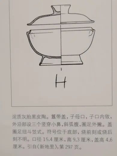 “H” 字见张炳火主编 良渚博物院 编著《良渚文化刻画符号》上海人民出版社出版2015年。718页,新地里出土用器物M①29:9陶簋